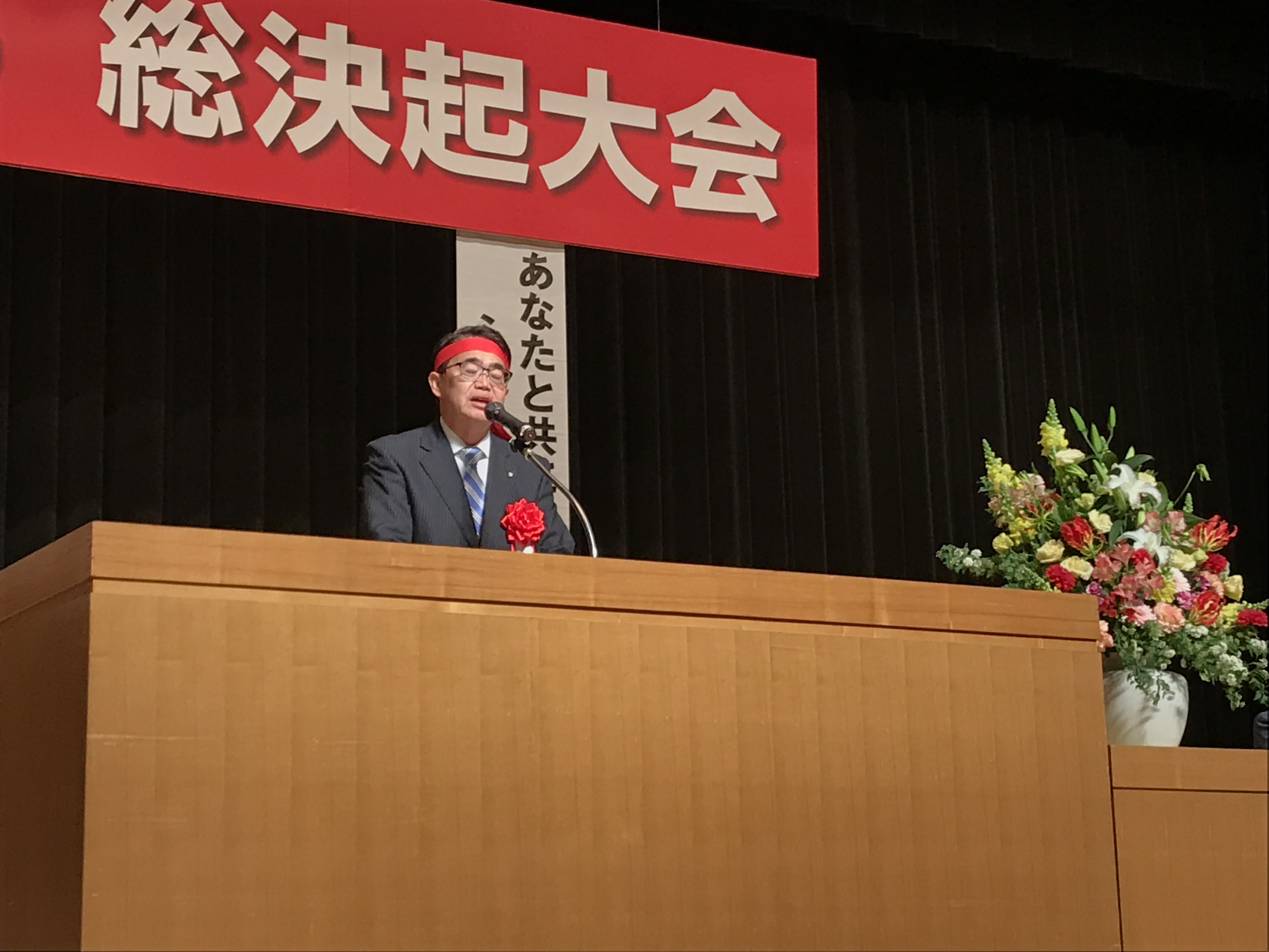 同志議員団を代表して「ガンバロー三唱」を執り行いました